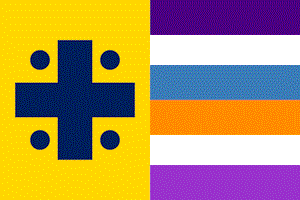 Kelm's original flag was designed by Scottie Smith on 12MAY23 and described as looking like a pride controller by Gemini Royce. |