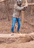 Chris Smith chopping a fallen tree on the trail in DEC24. |